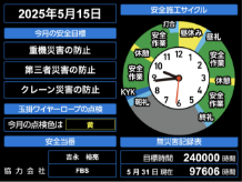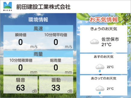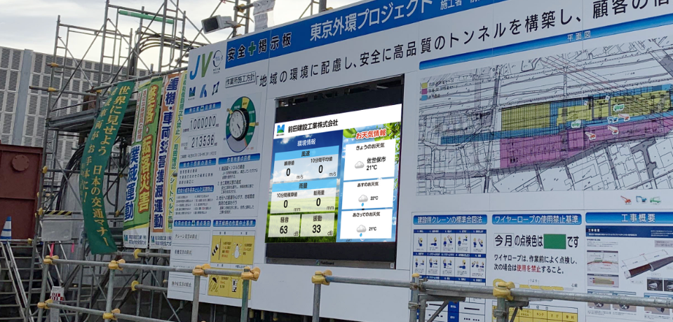 前田建設工業では、朝礼などの際に「FieldBoard(フィールドボード)」を通して、安全・衛生面における注意喚起の映像や、工程・作業内容、気象予報など多くの情報を現場に関わる職員、作業員に共有させている。